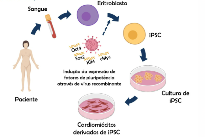 As iPSCs são obtidas quando se "reprograma" artificialmente uma célula sanguínea de um paciente para se tornar uma célula-tronco. As células-tronco, por sua vez, podem se transformar em qualquer outra célula do corpo. No caso do estudo do INC, essa célula é depois transformada em uma célula cardíaca, um cardiomiócito.